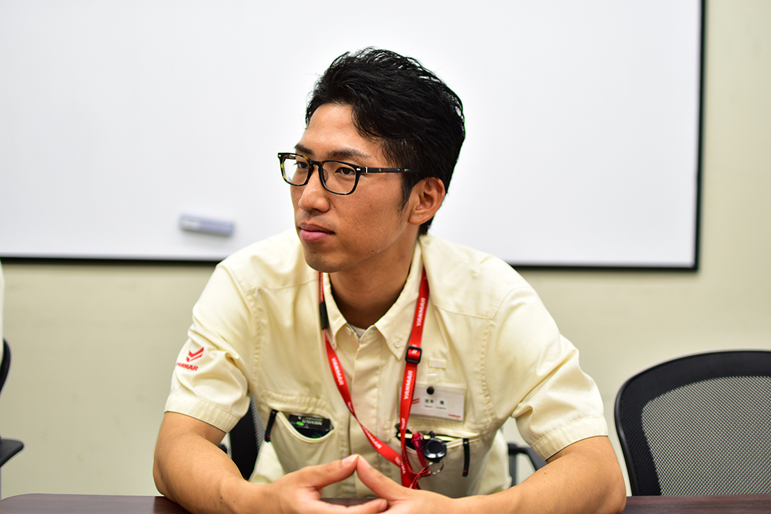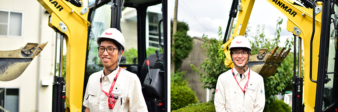 (右)村田健輔 開発部 設計部 設計第一グループ 2014年入社。ViO20-6では作業機やオプション機能の開発に携わる。
