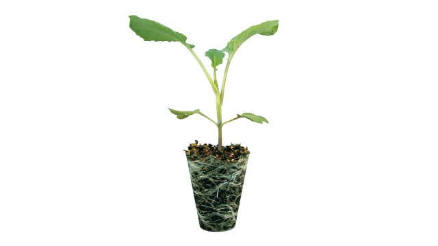 また、野菜移植機に適合する苗は、健苗で根張りが良く(根鉢形成が良い)、徒長していない、草丈が揃った均一な苗が理想です。そして、根鉢形成には育苗資材が重要となります。