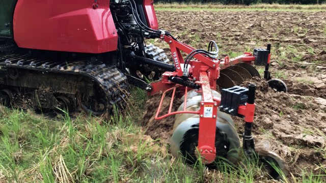 「水田・田畑輪換プラウ」は、水田での浅起こしができます。耕深調節は10~18cm。「丘曳きタイプ」は作業姿勢の調節が簡単でトラクターを傾けずに作業できるため、疲労が軽減されます。