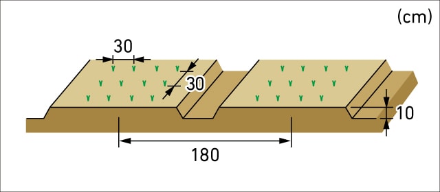 | 1うね条数 | うね幅 | うね高さ※1 | 条間 | 株間 |