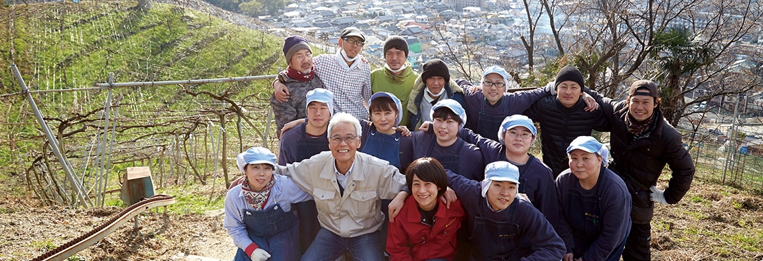 山頂付近を開墾していくとなると新たな労働力が必要になる。今後は農園で働く人材として、前編で紹介したボランティアだけではなく、障がい者も入れていくつもりだ。「大都市とその近郊には障がい者も暮らしている。彼ら彼女らが働きやすいシステムをつくっていきたい」同時に髙井さんは大阪ワインに対する共感や理解の輪を広める取り組みも行っていく。そのために対象とするのは子どもたち。高齢を理由に農家が手放した園地を引き受け、地元の小学校と提携して体験学習のための農園に生まれ変わらせる。整枝や剪定などの農作業とともに、大阪ワインの歴史も教える。