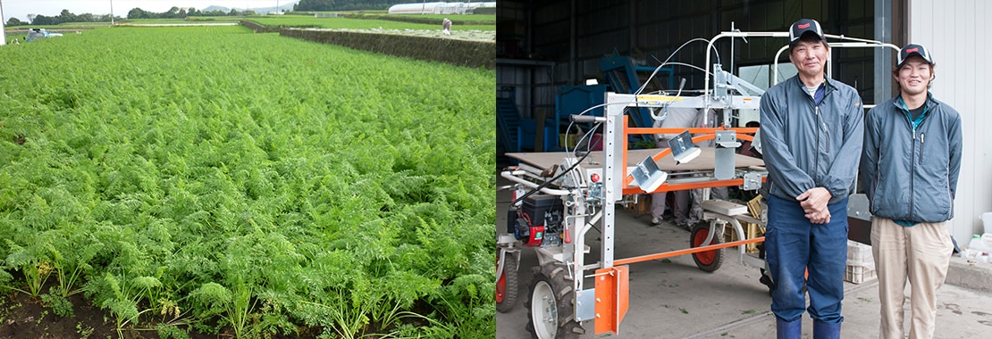 栽培作物(規模): にんじん(のべ7~8ha)、ホウレンソウ(約30a)、コマツナ(70~80a)