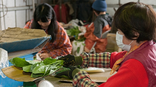 ご家族4名とパート1名の5名体制でほぼ年間を通じて作業を行い、作物は市場と仲卸業者へ直接出荷しておられる。直販だからこそ、作物の品質にこだわっている。
