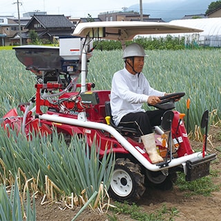転換畑での野菜栽培のポイントは、排水対策や土づくりだけではない。高齢化が進む現状では、稲作で乗る農業に慣れた体に、腰をかがめての移植や収穫などの作業は負担が大きい。乗用機械による省力化・労力軽減への対応も現実問題として外せない要素だ。
