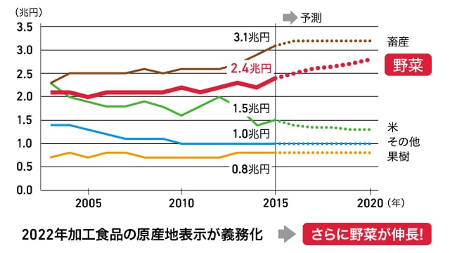 要因としては、安心安全を求める消費者の健康志向や本物志向、環境意識の高まりなどから、国産野菜の需要へと結びついている。