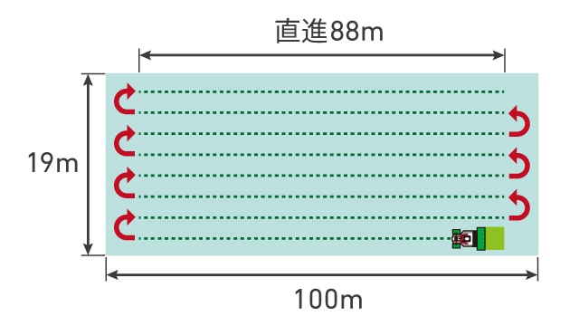 自動走行の場合、初心者A氏は直進において約20%作業時間を短縮。手動と比較して、熟練者B氏に近い結果になりました。