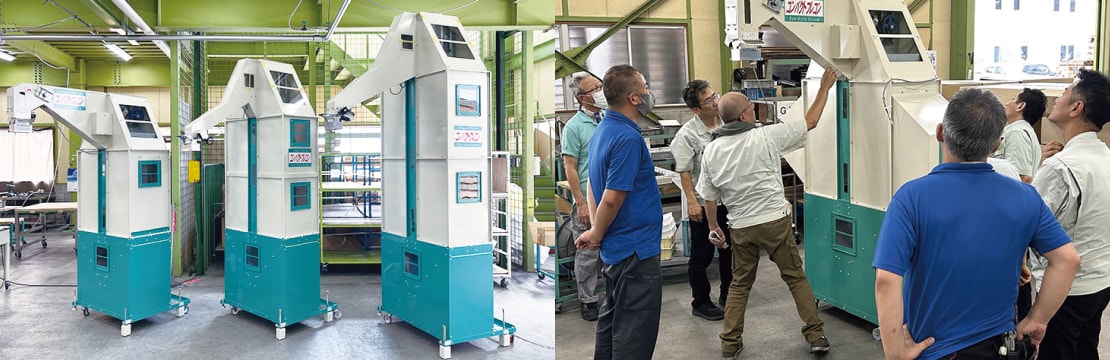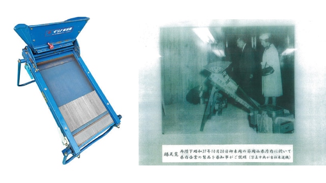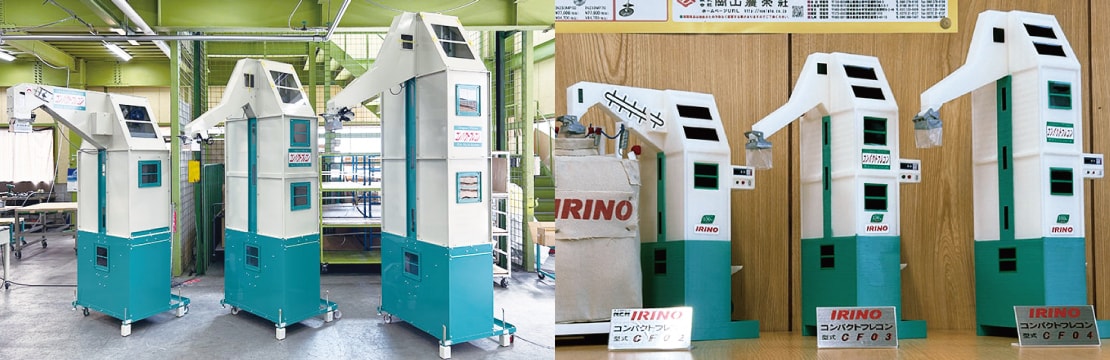同社が「入野鉄工所」であった時代に、創業者である入野政一氏の手により、国内で圧倒的なシェアを得た製品が生み出された。近代的米選機の第1号とされる「縦線式米選機」だ。縦線式米選機は開発者の名を冠した「イリノ米選機」の愛称で重宝され、イリノの名を国内農家に広く知らしめた。同社はその誇りを込めて、現在でも社名に「イリノ」の名を併記する。現代の米農家では自動選別計量機が主流となっているが、その原点には、岡山で生まれた「イリノ米選機」の存在がある。