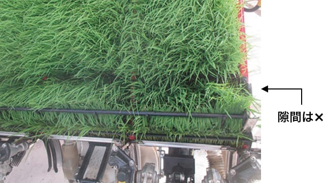 苗マットと苗マットの接続面に隙間ができないように注意しましょう。