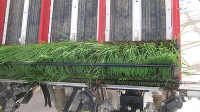 苗箱から取り出す際は丁寧に扱い、特にマット端面の形状を崩さないようにしましょう。