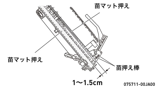 苗マットをセットするときは、苗マット押さえを苗マットの表面から1~1.5cm程度離れるようにセットします。