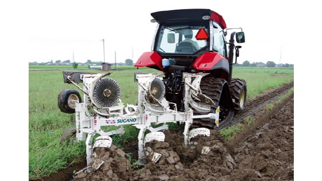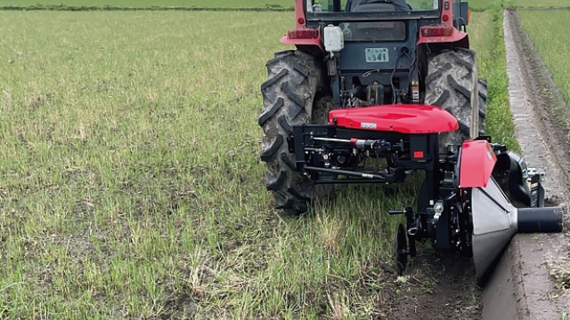 ほ場内に溝を掘り、余剰水を場外へ排出します。プラウタイプはけん引式で速いスピードで明きょをつくることができます。