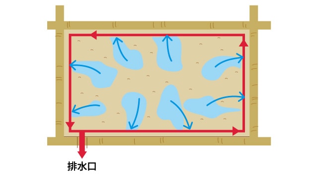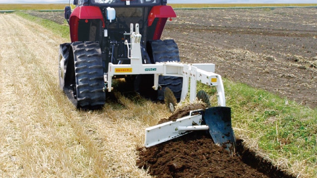 明きょ作業は、ほ場表面に水路をつくり、余剰水を排出する作業です。