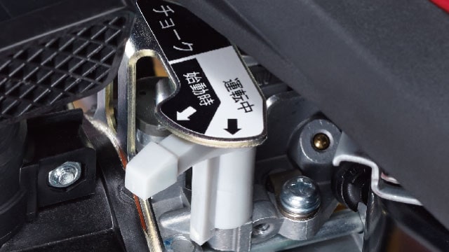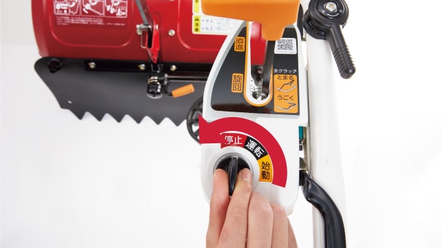 エンジンをかけたら作業中は、レバーを握ればスタート、離すとストップという簡単操作なので、ご年配の方や女性の方でも安心してお使いいただけます。