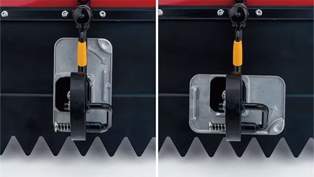 アタッチメント装着に必要な「跳ね上げヒッチ」により、ワンタッチでアタッチメントが上がり、取付・取外しがラクです。