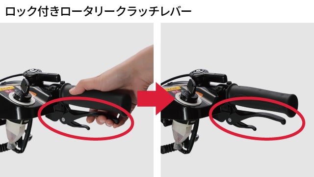 また、ロータリークラッチレバーには、手を離してもロックレバーにより「切」状態をキープする機構を追加。ロータリーを止めることで、安全に旋回や走行ができます(YK301SKを除く)。