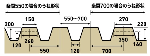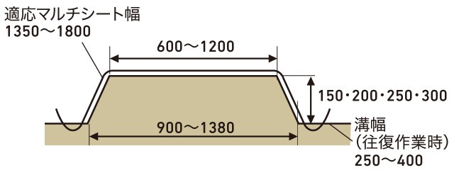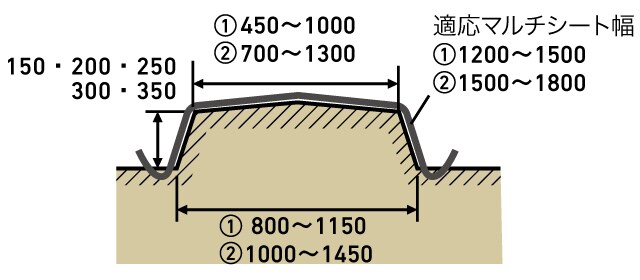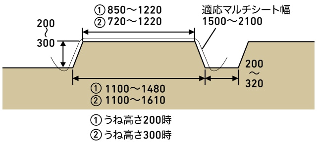 - ※①はうね高さ200mm、②はうね高さ300mmのときの数値です。