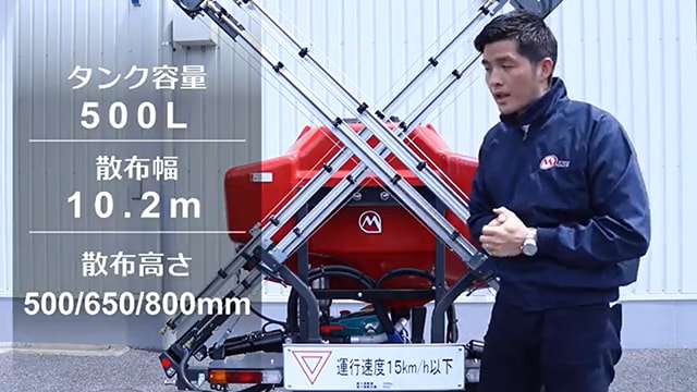- 散布幅は8.4mと手軽なサイズながら、全吐出量は最大25L/分で適確な防除作業が可能です。