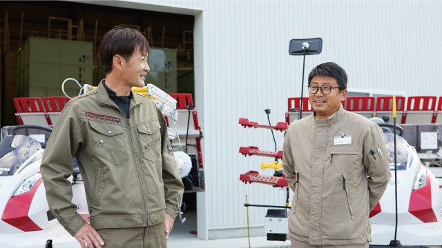 加えて、密苗田植機YR6Dの購入をきっかけに、ヤンマーの農繁期における農機具のメンテナンス・修理対応、きめ細かなアフターサービスに大変感心され、農業用ドローンの購入や新たなライスセンター建設の依頼、来年には新たに2台のコンバインも購入予定と、ヤンマーに信頼を寄せていただいているとのことだった。