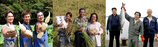 <一汁三菜メニューへの食材をご提供いただく生産者の皆様(一例)>