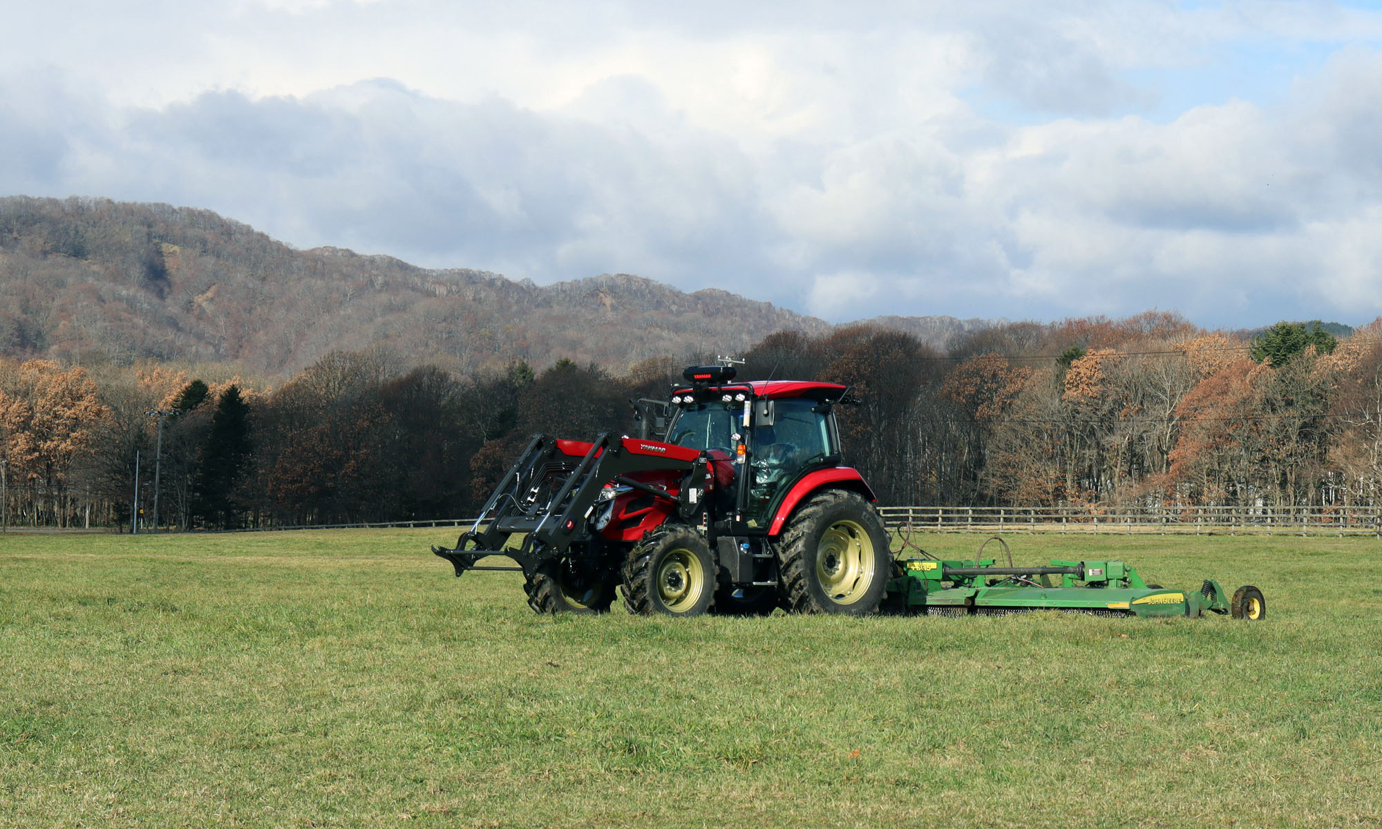 軽種馬の育成、体調管理においては、安全かつ適切な運動・摂食が可能な放牧地の管理が重要です。春から秋にかけては牧草の生育が著しく、猛暑など過酷な天候下にあっても毎日のようにトラクターによる草刈り作業が必要です。また、冬季には降雪のたびに除雪を行う必要があることから、年間を通じて長時間労働の要因となっています。
