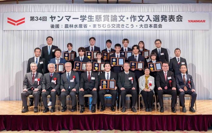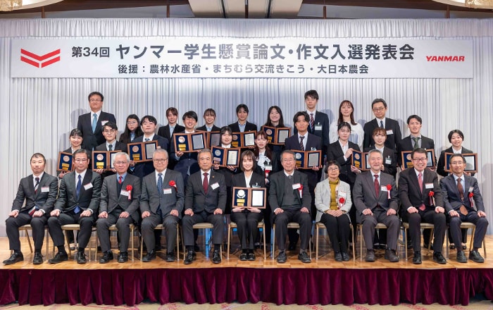 ヤンマーホールディングスのグループ会社であるヤンマーアグリ株式会社(本社:岡山県岡山市、社長:増田長盛、以下ヤンマーAG)は、2月9日(金)、「第34回ヤンマー学生懸賞論文・作文入選発表会」を4年ぶりに対面開催し、優秀作品として論文13編(大賞、特別優秀賞、優秀賞)、作文13編(金賞、銀賞、銅賞)を決定、表彰しました。