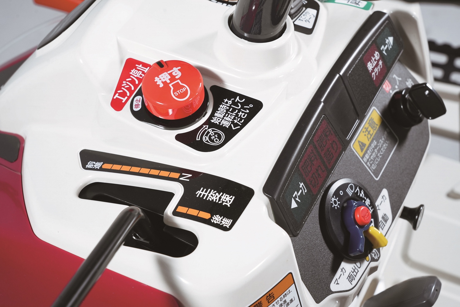 (1)1人作業でのあぜ越え、ほ場の出入りも安心の「微速前進レバー」