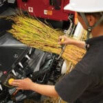 手こぎ安全装置は両手操作方式を新たに採用。手こぎレバーと手こぎスイッチを同時に押している間だけフィードチェーンが駆動するため、作業時の巻き込まれ事故を未然に防止します。 また、収穫作業前に機体各部への注油が簡単に行える集中注油装置や、作業中のトラブルに素早く対応できるマルチオープン機構など、日々のメンテナンス性を追求した機能により、機械トラブルの予防につながります。