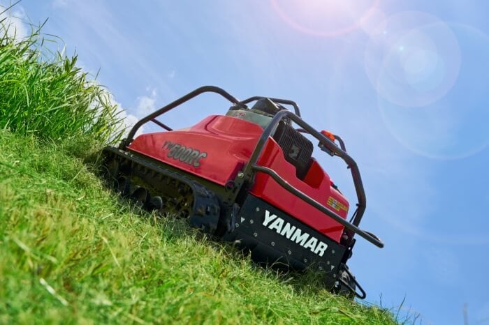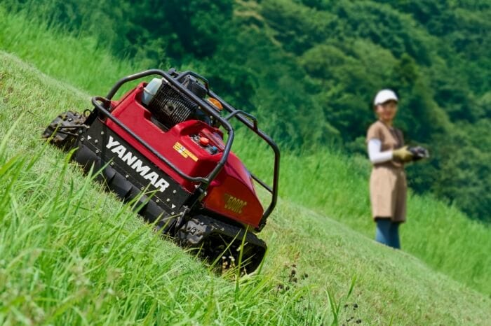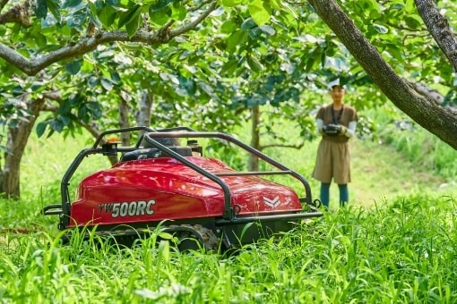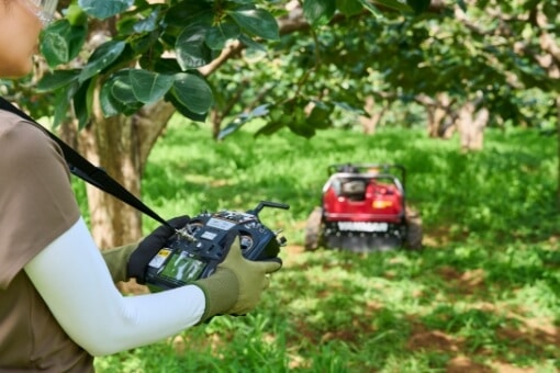 果樹園などの作業がしづらい低い枝下もラジコン草刈機におまかせ。傾斜地や太陽光パネル下など、立ち入りにくかった場所も効率よく作業できます。