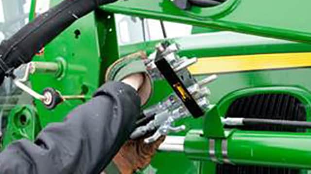装着、取り外しには時間をかけないのがジョンディアの特長です。簡素化された仕組みにより、脱着は数分で行うことが可能です。