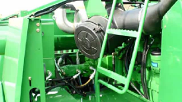 本機の右後ろからステップを引き出して登るとエンジンルームに簡単にアクセスできます。オイル量・エアクリーナー・ロータリースクリーンの清掃など簡単に行うことができます。