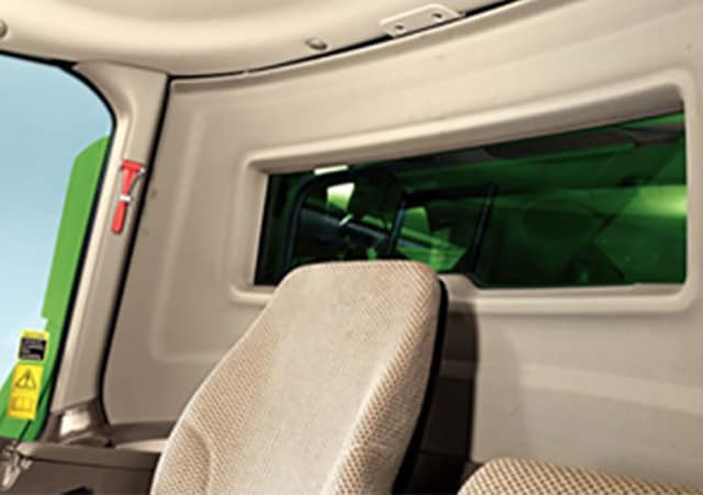大人2人が乗ってもゆったりできる広々空間。騒音は、77dBと低く抑えた静穏キャビン設計で、モニターや操作パネルなどは視界を妨げない場所に配置しているので作業に集中できます。