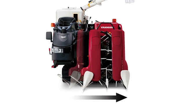 クローラ幅と刈幅がほぼ同じなので未刈稲を踏まずに、刈取りは左回りも右回りも自由自在です。