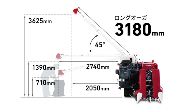 オーガの先端は、水平よりもさげることができるので、袋取りもラクです。