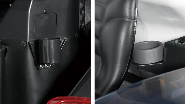 運転席の左後部にボトルホルダーを、左前部にオイルホルダーを設置しています。