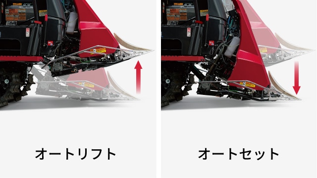 設定位置への刈取部の下降・上昇がワンタッチででき、刈始め・刈終いに便利です。