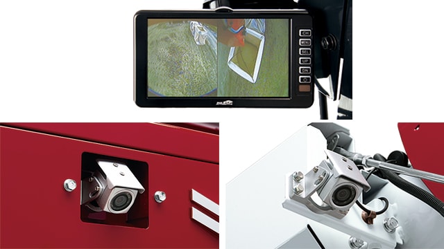 機体後方と排出オーガ先端の映像が運転席で同時に確認でき、効率良く安全に作業が行えます。