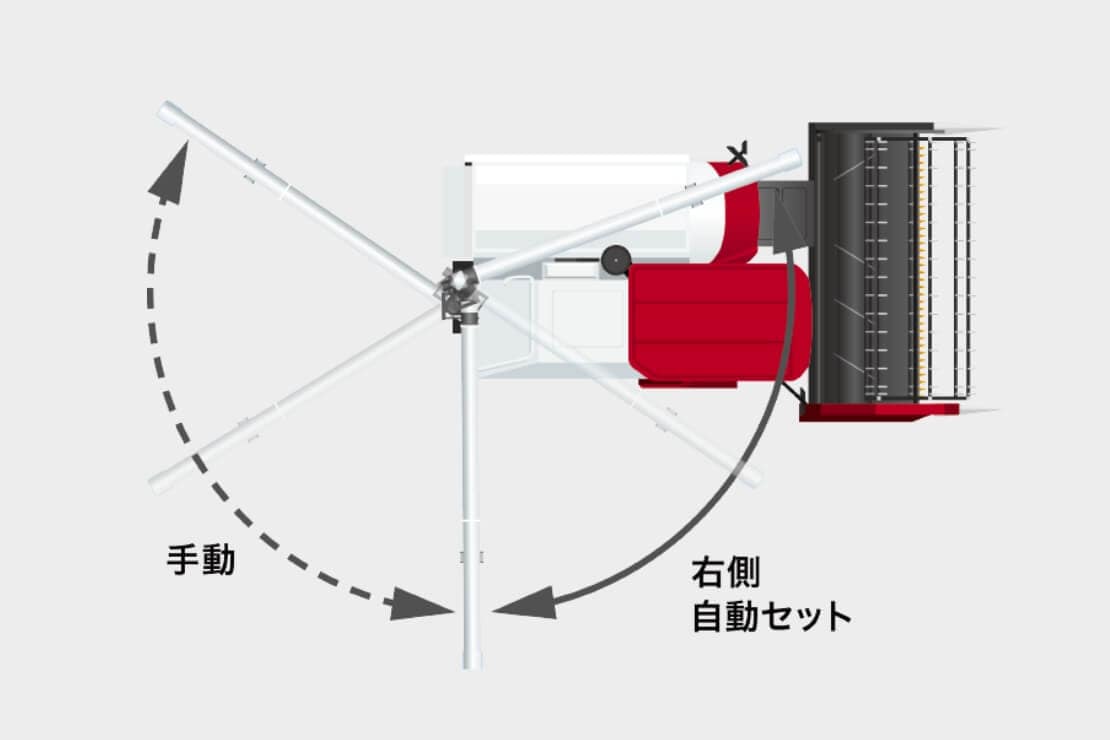 ほ場の起伏などを感知し、左右のクローラを上下させて水平を保つ「機体水平制御」。