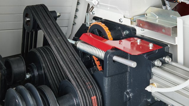 ロール部の駆動方式をギヤ式からベルト式に、ロール圧調整を機械式からエアシリンダ式に変更。