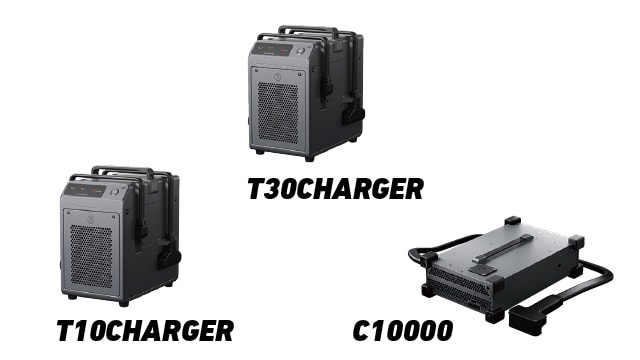 T10CHARGER・T30CHARGERは2個装着、C10000は1個装着が可能です(充電は1個ずつ)。