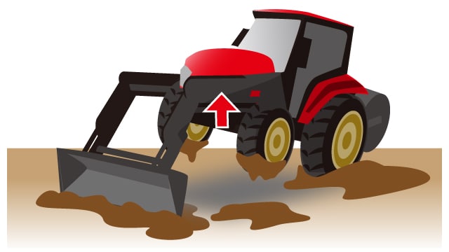 堆肥・飼料などの積込みや、前輪を浮かせてのヌカルミ脱出、掘削・整地作業に威力を発揮します。