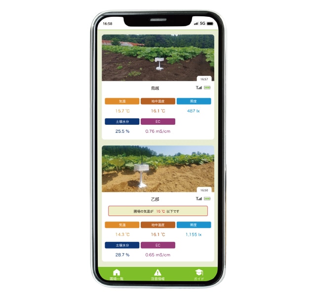 作業中でも迷うことなく、圃場環境を把握でき、ストレスなくご利用いただけます。