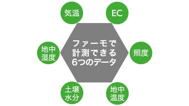 露地ファーモは、気温や照度の他にECなど、詳しい土壌の状態を計測できます。土壌の状態を知ることで、生育場所による生育状態の違いなどの分析が可能です。