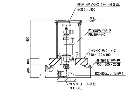 PUV50A-4-D+台座付きエルボ構造図
