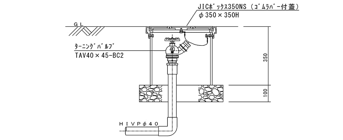 - 垂直型のバルブなのでバルブボックスが小さくすみます。