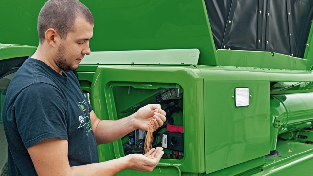 大容量の空気を送り込み、プレクリーナーを通過することによって、籾殻やごみを吹き飛ばします。約3分の1の穀粒はプレクリーナーによって吹き出される前に分離され、クリーングレンオーガーに直接落ち、チャフシーブを通過する穀粒や籾殻の量を減らします。
