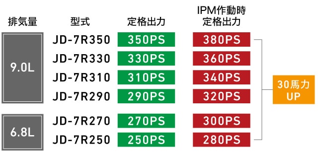 JD-7R350 エンジン性能曲線(馬力・トルク)