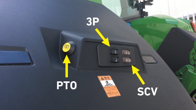 キャビンの外で、SCV/3P/PTOを操作できます。