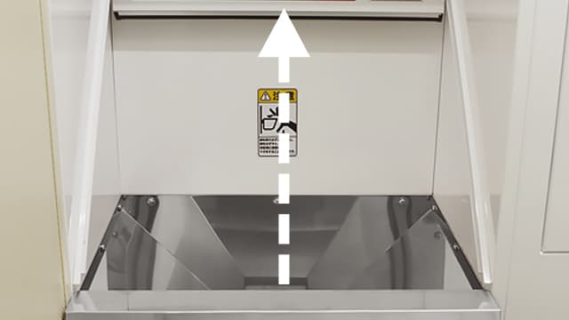 お金を投入することで開く籾・玄米の投入口シャッタ。いたずらを防止し、ゴミやほこりなどの異物もブロックするため、安心してお使いいただけます。