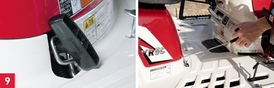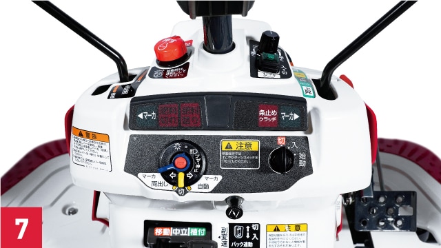 始動性やメンテナンス性に優れたエンジンを採用。田植え時期にセルスタートでエンジンがかからない場合でも、リコイルでエンジン始動でき、自動充電します。