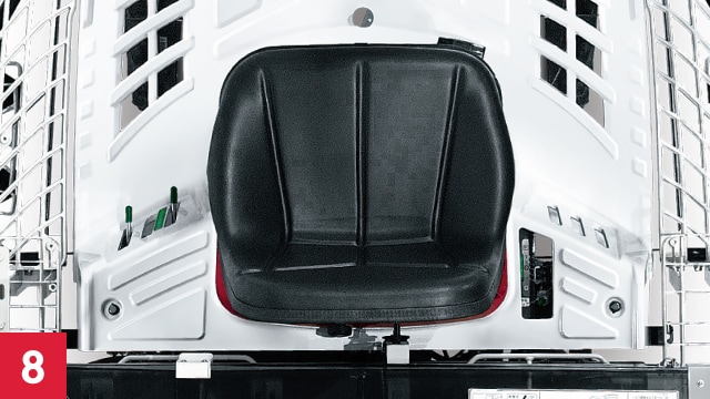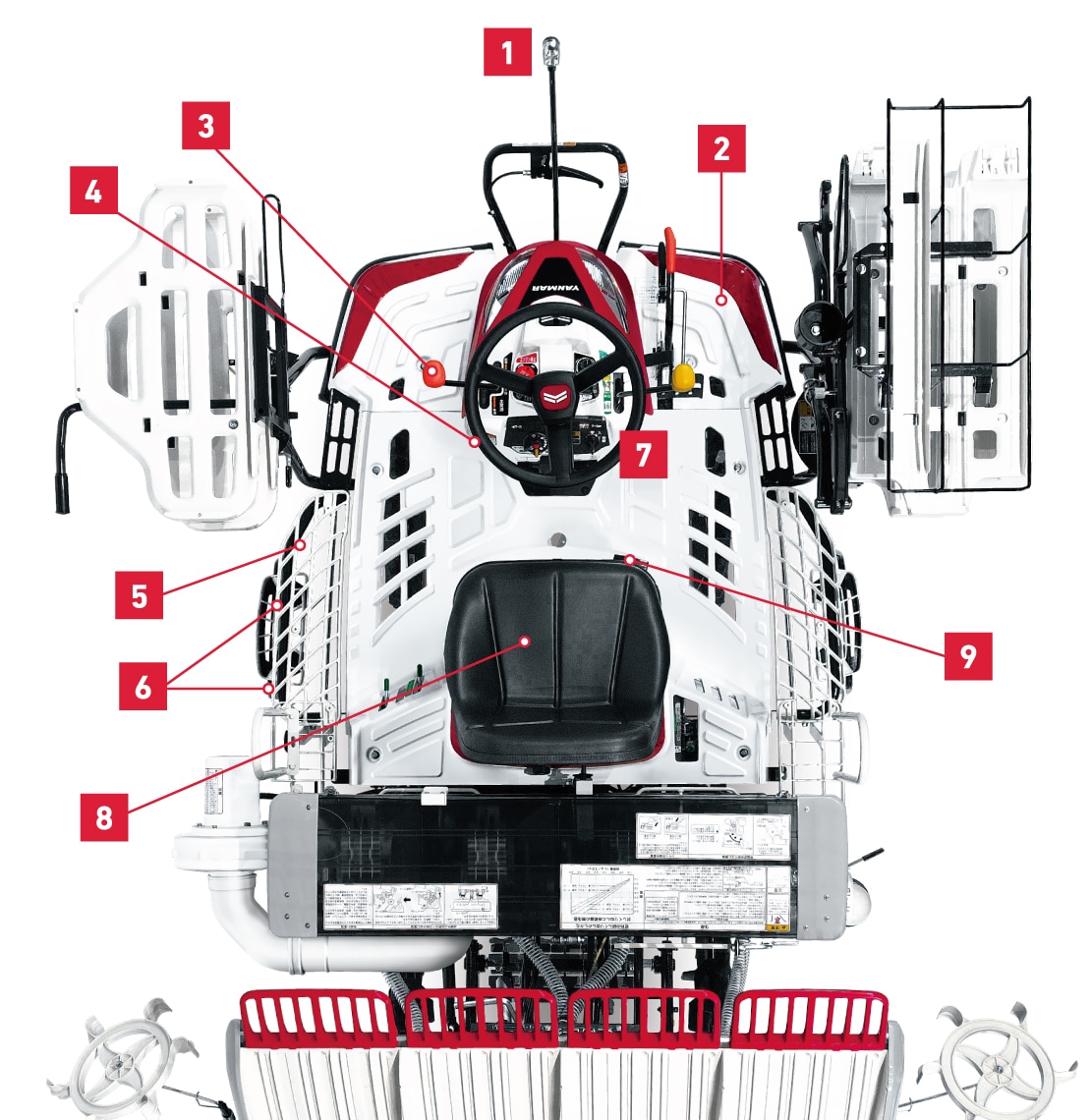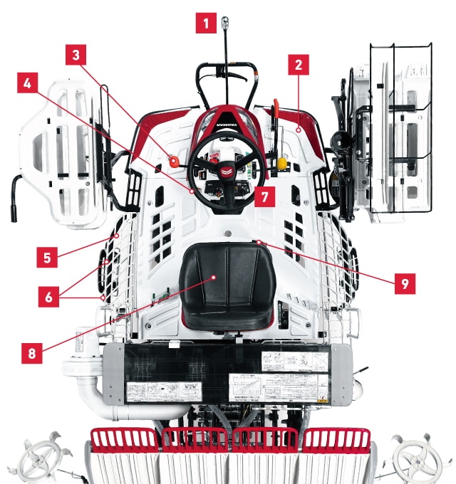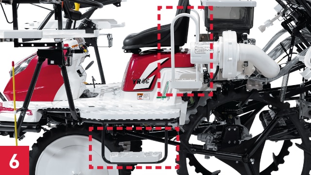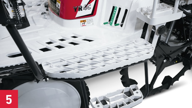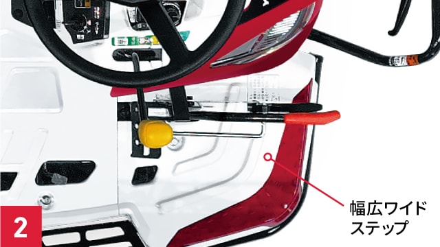 機体前方のスペースが広く、前方からの乗り降りや機械の上での作業がラクに行えます。